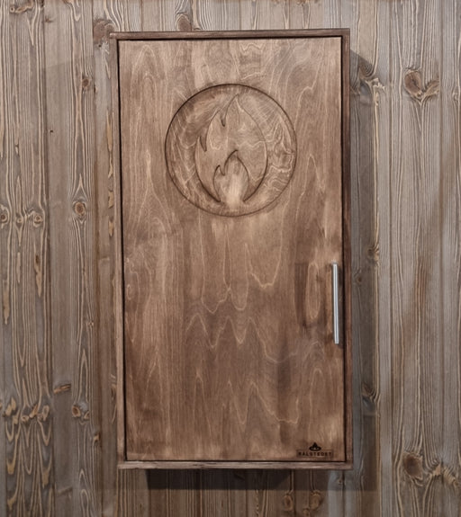 Skapet er håndlaget i Drøbak, av Drøbak Micro-snekkeri. Flere timer med pussing, sliping og kjærlighet er lagt i disse eksklusive skapene Bålskapen...